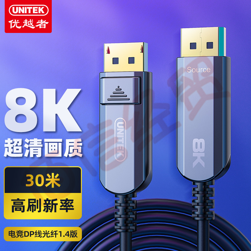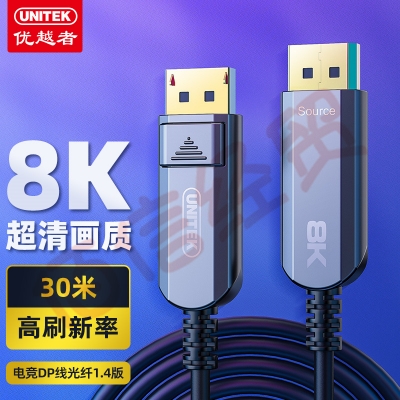 优越者(UNITEK) C619BK光纤DP线30米 4K144Hz 8K高清DisplayPort公对公连接线电脑游戏电竞显示器视频线 自营