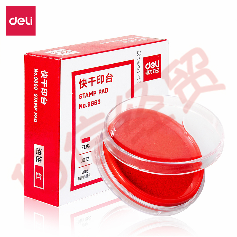 ¥8.70得力(deli)9863-φ80mm透明圆形财务快干印台印泥 办公用品 红色