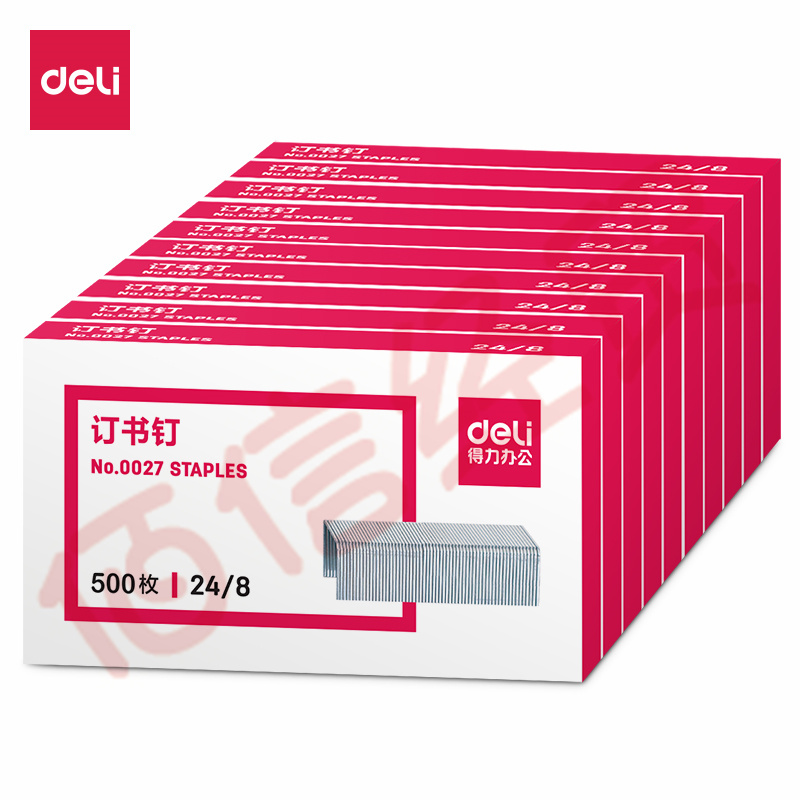 得力(deli)24/8加厚订书钉/订书针 500枚一盒 10盒装 办公用品 0027 自营