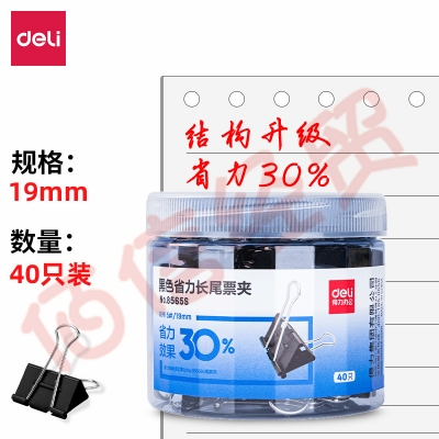 得力(deli)40只19mm省力黑色长尾夹票夹 5#金属燕尾夹票据夹子文件夹 办公用品 小号8565S 自营
