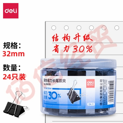 得力(deli)24只32mm省力黑色长尾夹票夹 3#金属燕尾夹票据夹子文件夹 办公用品 中号8563S 自营