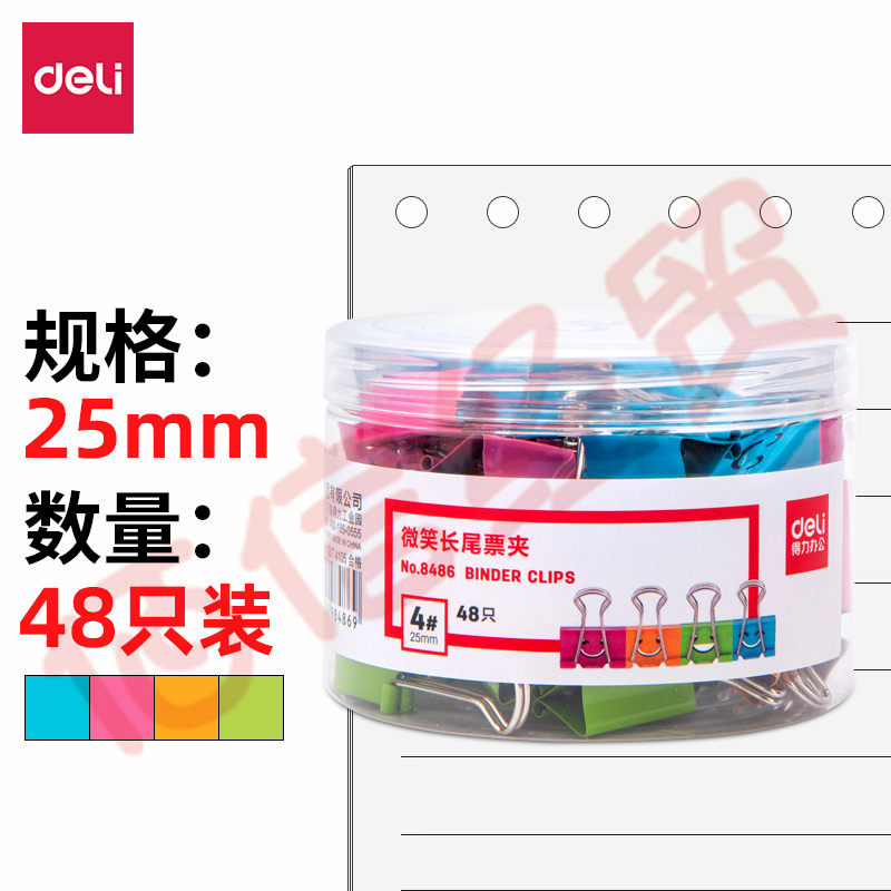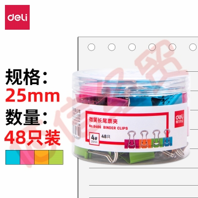 得力(deli)48只25mm微笑系列金属长尾票夹票据夹燕尾夹文件夹 混色装8486 自营