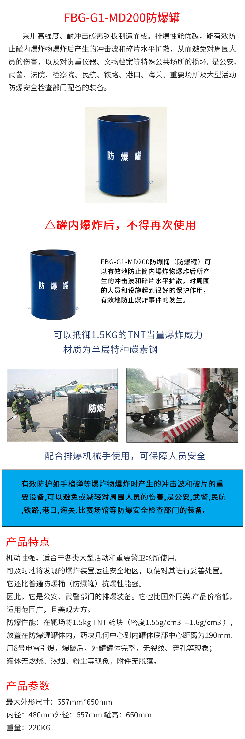 麦盾MD-200 防爆桶 1.5KG TNT防爆罐 单层防爆罐 排爆桶 排爆罐