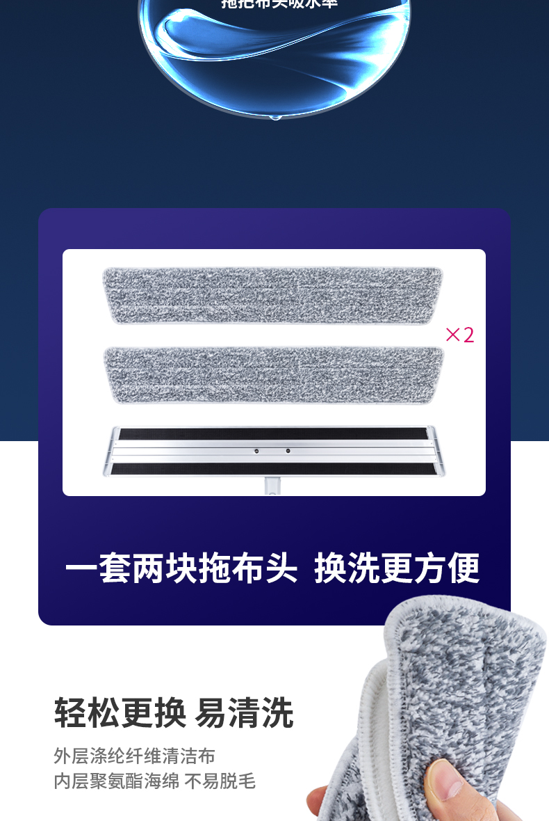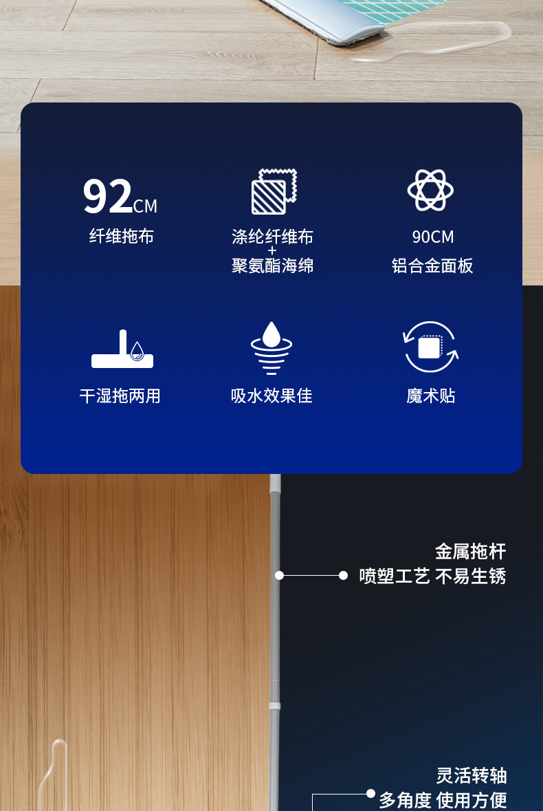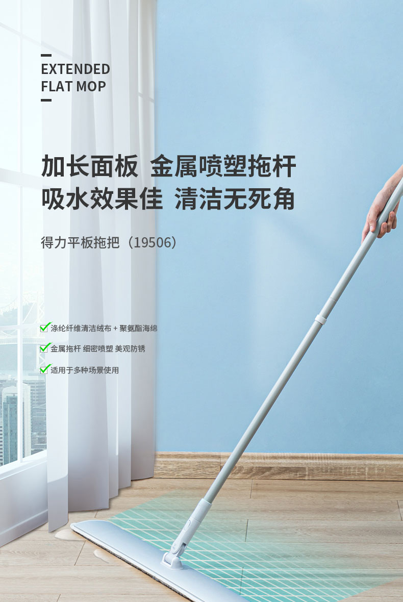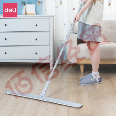 得力(deli)90cm平板拖把 高质感铝合金面板 魔术贴拖布设计易更换 拖布干湿两用快速吸水 2块拖布 19506 自营