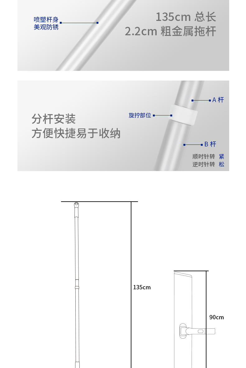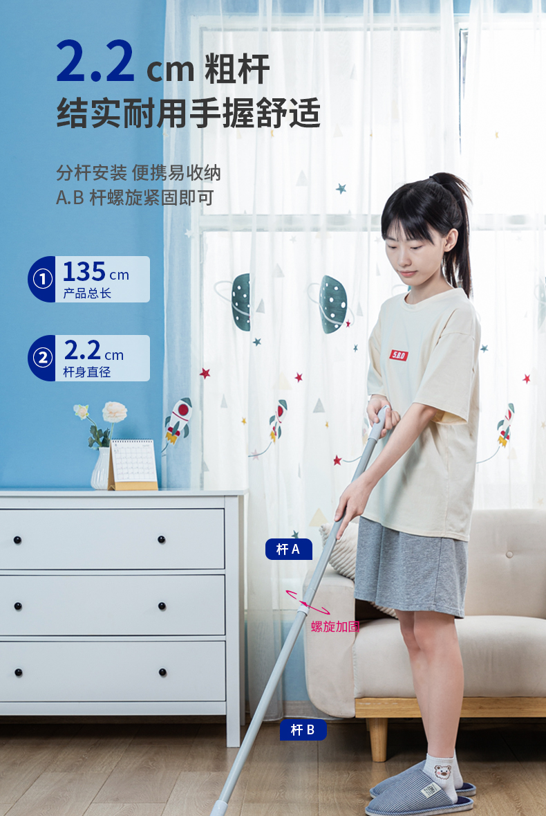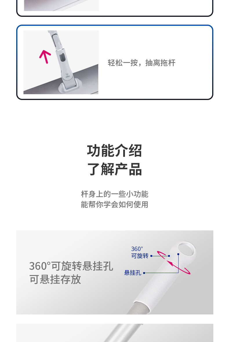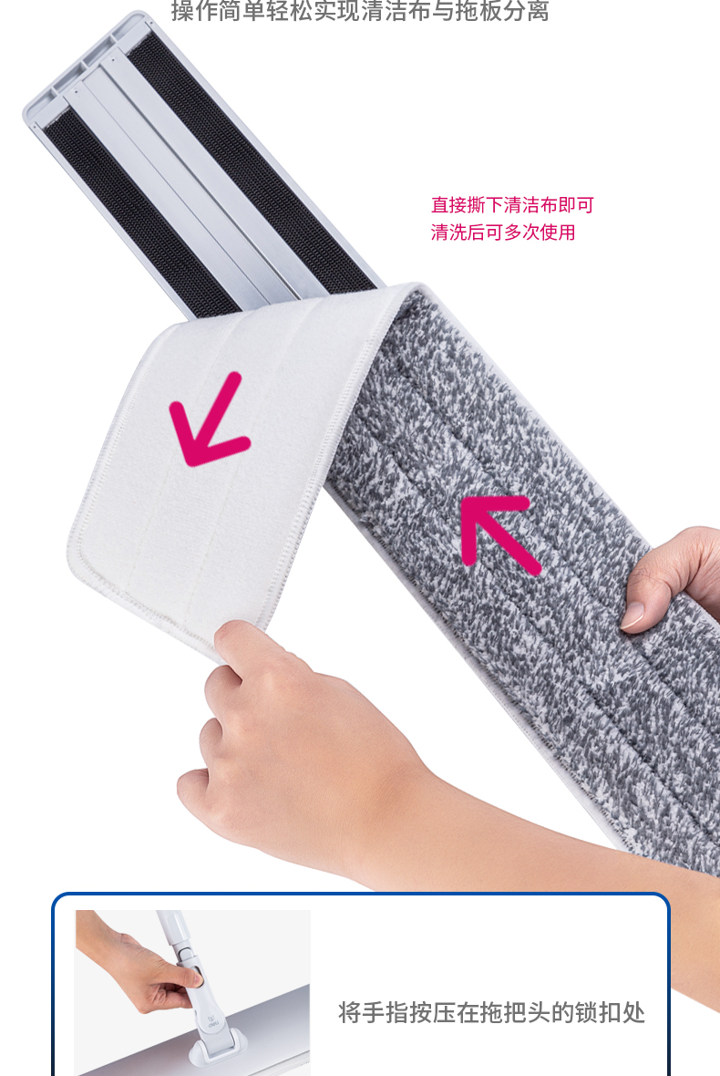 得力(deli)90cm平板拖把 高质感铝合金面板 魔术贴拖布设计易更换 拖布干湿两用快速吸水 2块拖布 19506 自营