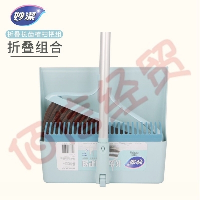 妙洁(MIAOJIE)长齿梳扫把组簸箕套装折叠站立收纳扫地笤帚扫帚 蓝色套装(5个起售) 自营