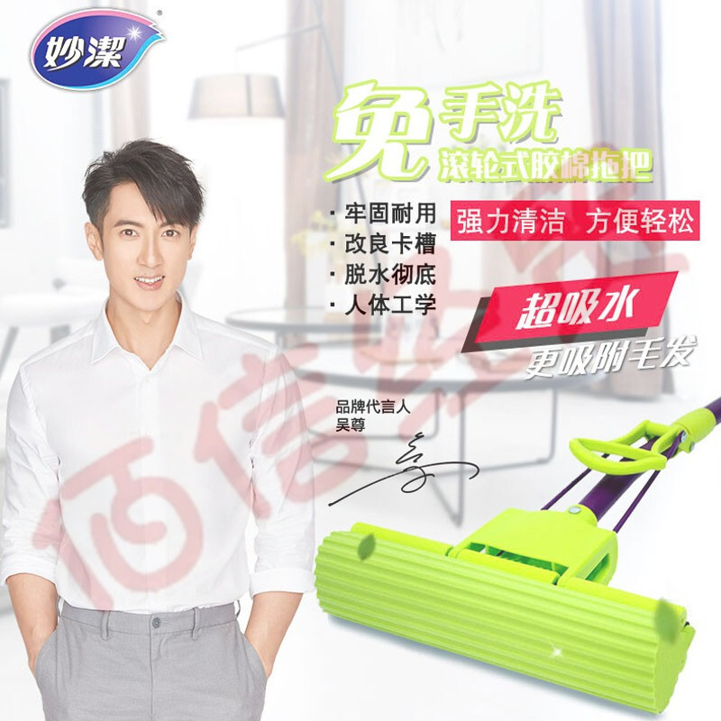 妙洁 吸水胶棉拖把卡槽加强型家用一拖净拖地神器 带原装海绵替换头 胶棉拖(5个起售) 自营