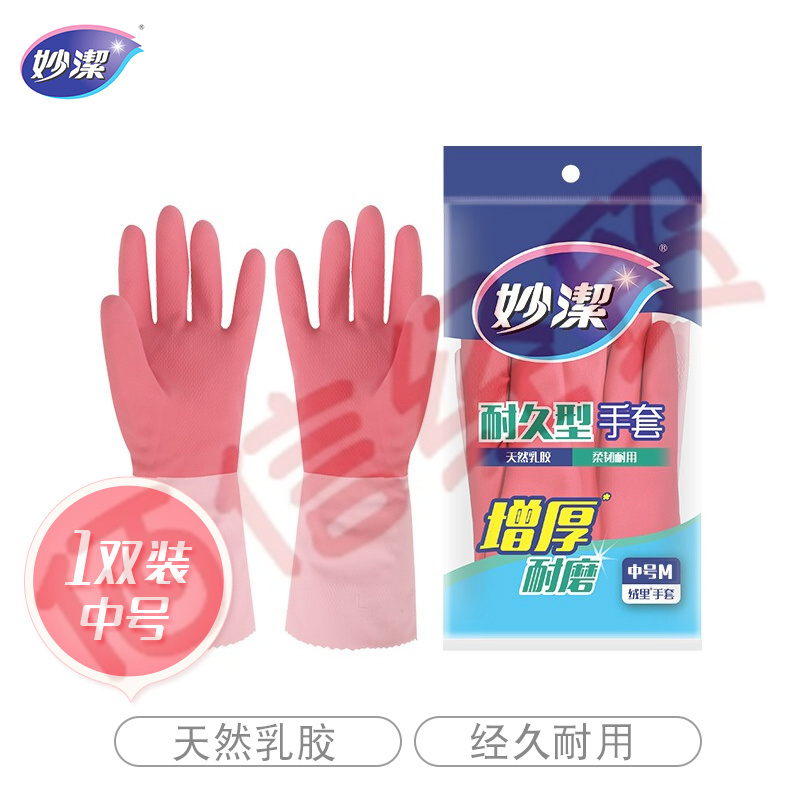妙洁 清洁家务 橡胶手套 中号 耐久型 洗碗防水防滑(10个起售) 自营
