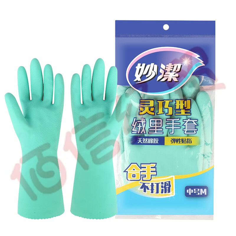 妙洁耐久型绒里手套增厚家务清洁加厚厨房洗碗洗衣橡胶防水 灵巧型手套 L大号(10个起售) 自营