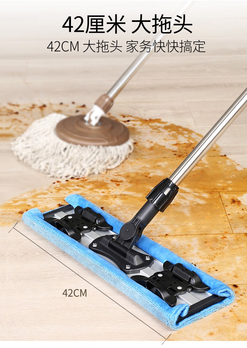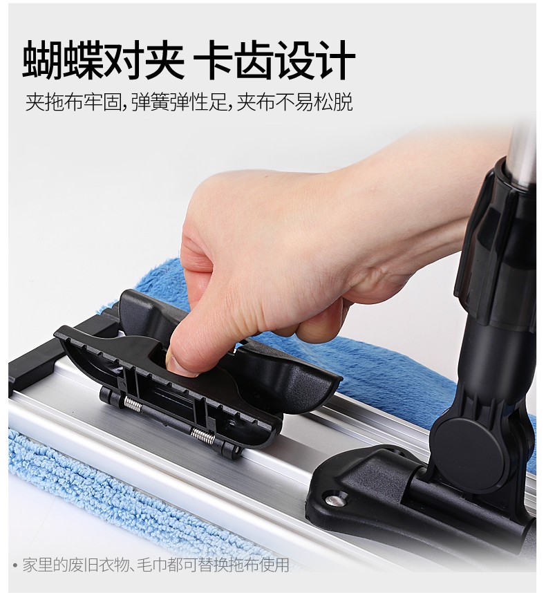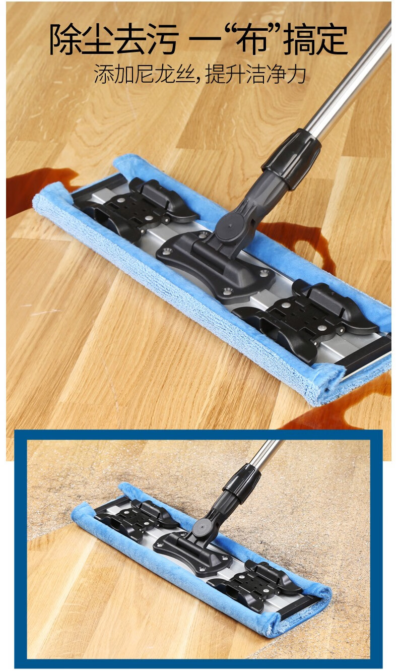 美丽雅 经典平板拖把夹布地拖 干湿两用木地板墩布 共2张拖把替换布