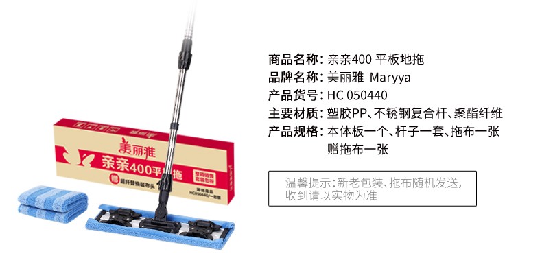 美丽雅 洗刷刷平板拖把备件 不锈钢拖把杆 单拖把替换装墩布拖把头(10个/箱)