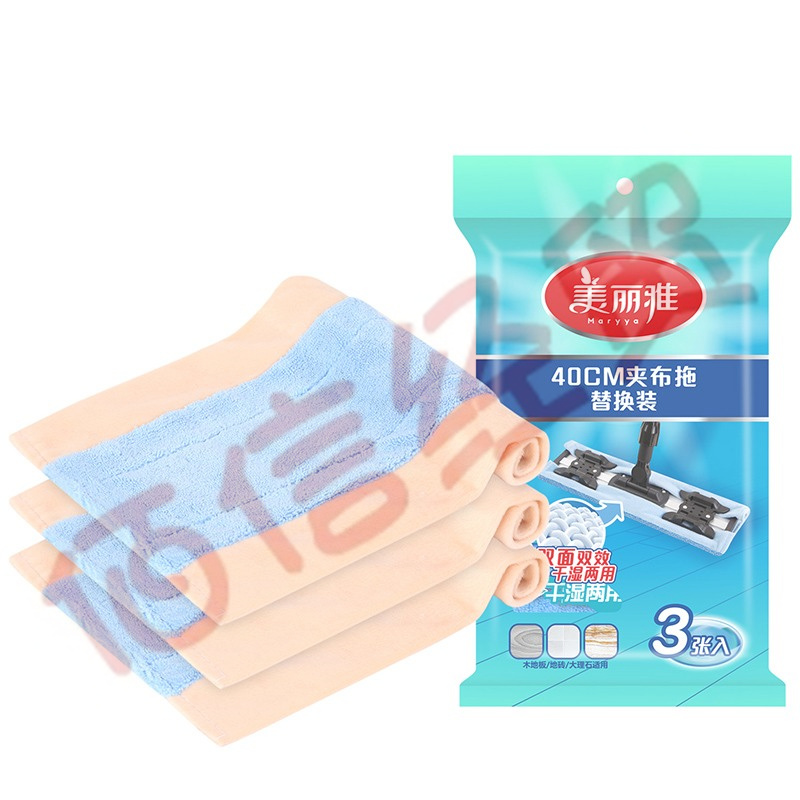 美丽雅拖把布平板拖把替换布夹布拖配件墩布夹固式欢乐礼盒潇洒400亲亲拖把头尘推布通用40cm 3片装(颜色随机)(5个起售) 自营