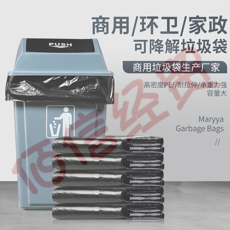 美丽雅 可降解加厚型物业商用垃圾袋 黑色环保塑料袋 80X100cm【厚1.5丝50只装】(5个起售) 自营