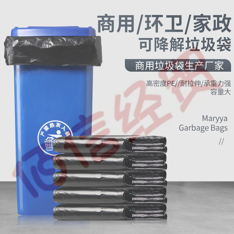 美丽雅 可降解加厚型物业商用垃圾袋 黑色环保塑料袋 100X110cm【厚1.6丝50只装】(5个起售) 自营