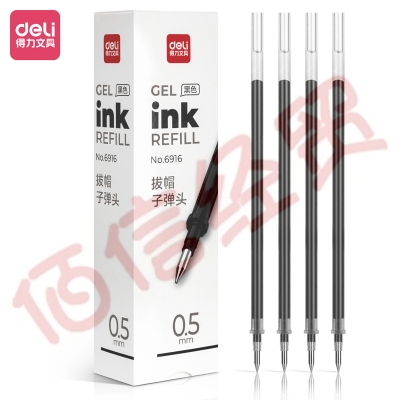 得力(deli)0.5mm黑色中性笔笔芯 子弹头水笔签字笔替芯 20支/盒6916 自营