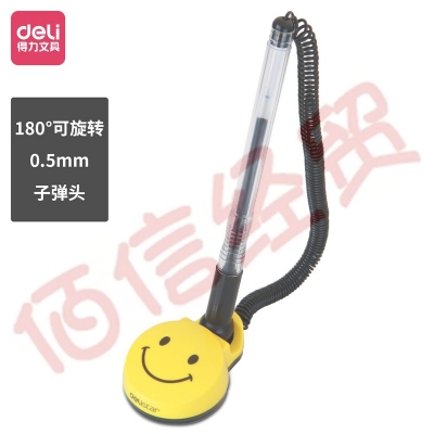 得力(deli)0.5mm黑色微笑办公桌面台笔 可粘贴台式中性笔单支 办公用品(10支起售) 自营