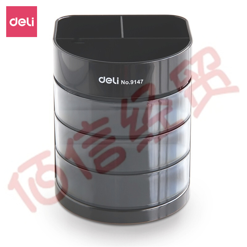 得力(deli)三层多功能办公笔筒 创意桌面收纳盒 办公用品 颜色随机9147 自营