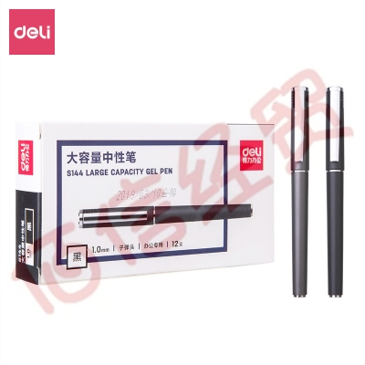 得力 deli S144 办公大容量中性笔1.0mm子弹头(黑) 单支(12支/盒)12支起售 自营