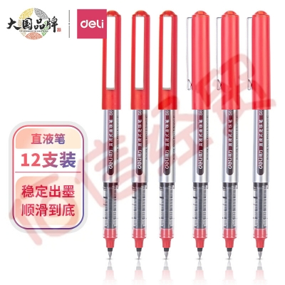 得力(deli)直液笔中性笔 0.5mm子弹头签字笔学生考试笔走珠笔水笔 红色 办公用品12支/盒S656 自营