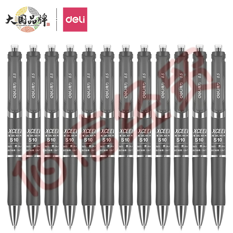 得力(deli)中性笔签字笔 0.5mm子弹头磨砂杆学生办公按动笔水笔 黑色 12支/盒DL-S10 自营