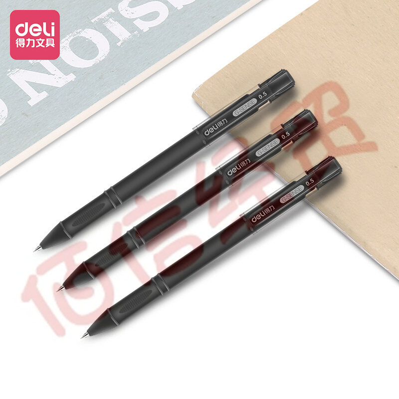 得力(deli)0.5mm黑色中性笔水笔签字笔 办公用品 子弹头磨砂杆12支/盒DL-S65 自营