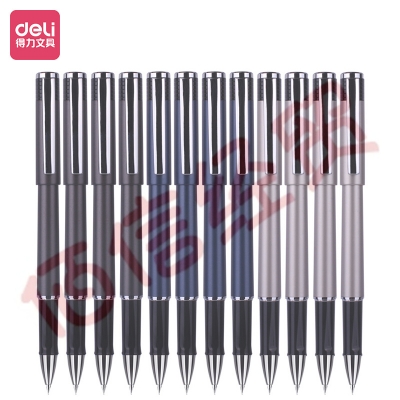 得力(deli)大容量办公中性笔 签字笔12支 0.5mm子弹头黑色 自营