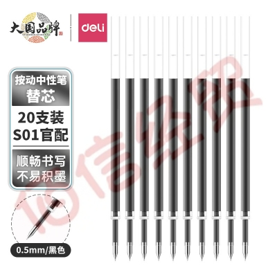 得力(deli)0.5mm按动中性笔芯替芯 S01 K35用 黑色子弹头20支/盒 办公用品 自营