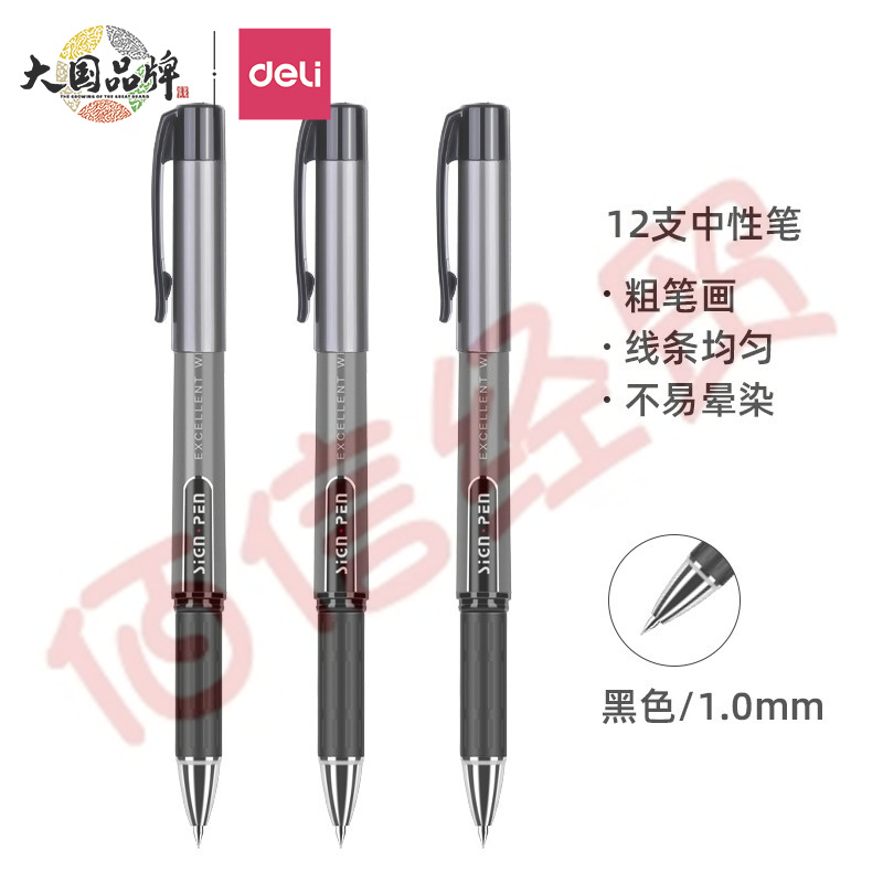 得力(deli)1.0mm办公中性笔碳素签字笔 办公用品 12支/盒S73黑色 自营