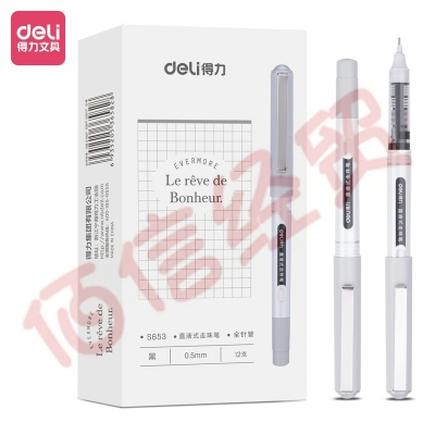 得力(deli)0.5mm全针管直液走珠签字笔学生考试中性笔 12支/盒DL-S653 自营