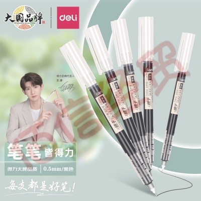 得力(deli)直液笔签字笔 0.5mm全针管中性笔 商务办公学生水笔走珠笔 黑色 12支/盒S856 自营