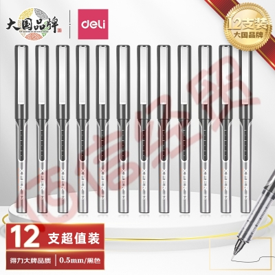 得力(deli)直液笔 0.5mm全针管中性笔签字笔 学生办公走珠笔水笔 黑色 12支/盒 S657 自营
