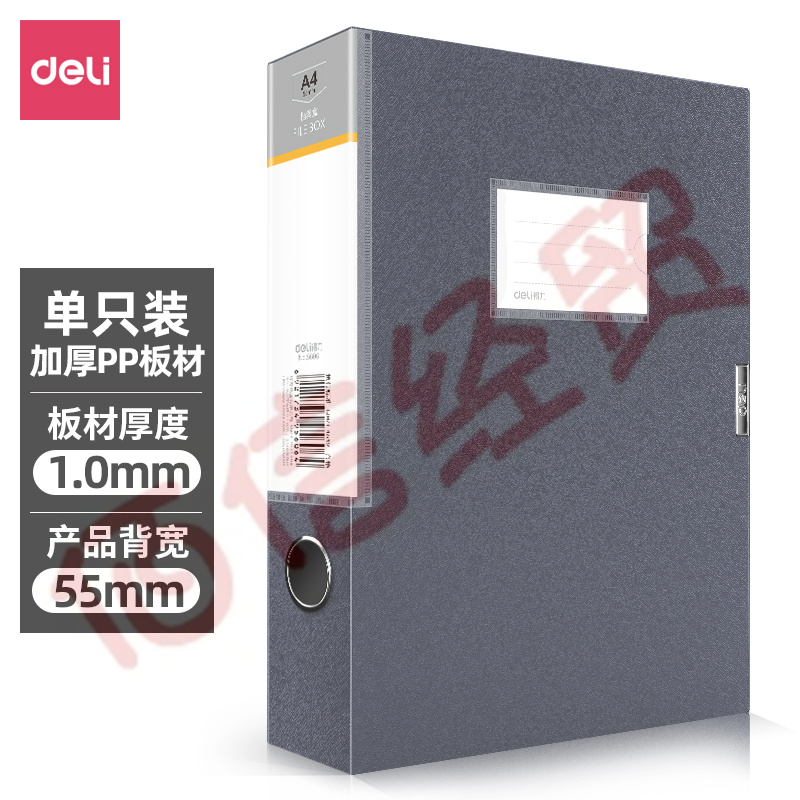 得力(deli)-1只-55mm-A4睿商系列加厚塑料文件盒 加厚 财会文件盒 考试收纳 5606深灰 自营