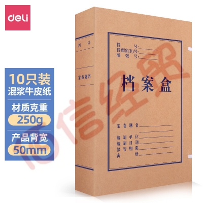 得力(deli)10只50mm250g牛皮纸文件盒 档案盒 加厚档案盒 财务凭证文件盒 考试收纳5922 自营