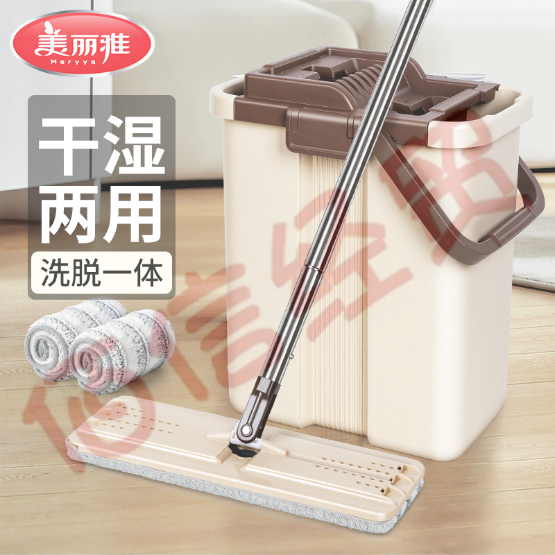 美丽雅 拖把 免手洗 平板拖把 大号 懒人拖地神器拖布家用干湿两用省力刮刮桶墩布吸水 共2张拖布 自营