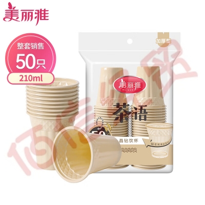 美丽雅(Maryya) 一次性塑料水杯210ml*50只 加厚耐热商务招待办公室家用水杯PP材质加厚耐热防烫不易变形(10个起售) 自营