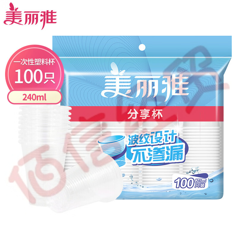 美丽雅Maryya一次性塑料杯100只240ml 耐热不易变形透明果汁分享杯商务茶杯透明杯子(10个起售) 自营