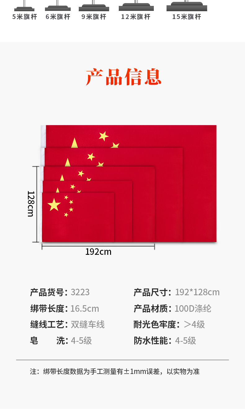 得力(deli)3号国旗/五星红旗(128*192cm) 3223 自营