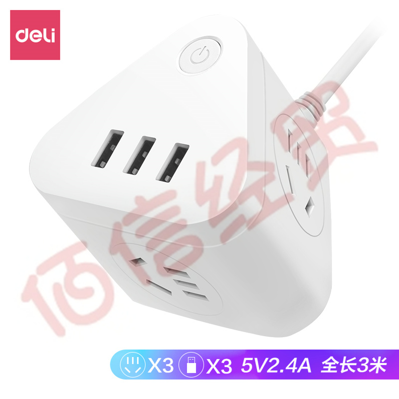 得力(deli)三角魔方插座 智能USB插座 插排/插线板/接线板/排插 3USB接口+3组合孔 总控 全长3米 18321-03 自营
