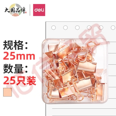 得力(deli)-25只 -4#玫瑰金长尾夹-25mm--78203 (每包4盒) 自营