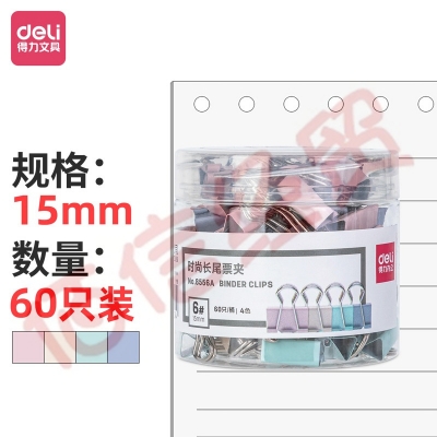 得力(deli) 长尾夹 8556A混色/60只(15mm) 自营