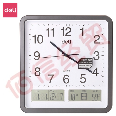 得力(deli)现代简约创意挂钟 万年历温湿度显示创意时钟低噪音挂钟 8823 自营