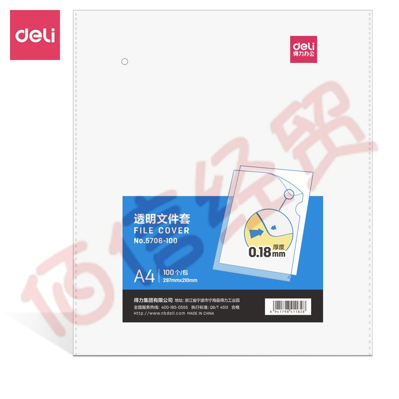 得力(deli) A4透明文件套 办公用品 L形E310文件夹两页夹 100个/包 5706 自营