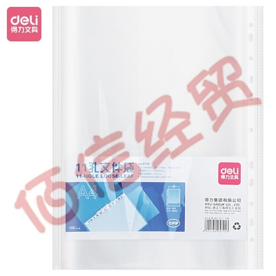 得力(deli)5715 11孔资料册A4文件袋 替芯袋保护袋 文件快递袋 搭配孔夹快劳夹使用 100只/包装 自营