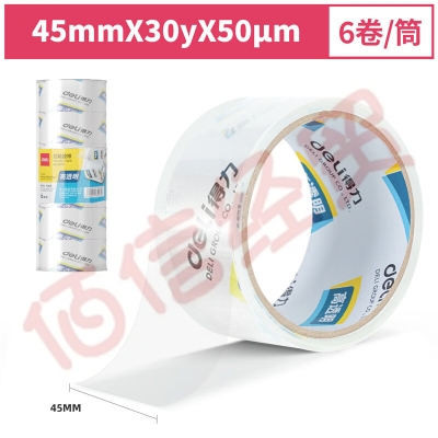得力(deli) 高品质高透明封箱胶带打包胶带 45mm*30y*50um 6卷/筒 办公用品 30170 自营