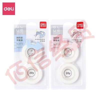 得力(deli) 透明隐形胶带套装 改错纠正手撕写字复制胶布 宽12mm长18.2m 2卷30112 260571 自营