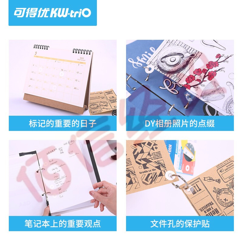 可得优(KW-triO)活页孔圆孔保护贴护孔贴补强器打孔机贴纸修补工具打孔器国誉打孔补强器平价替代品 透明护孔贴(2盒装)QT-01 自营