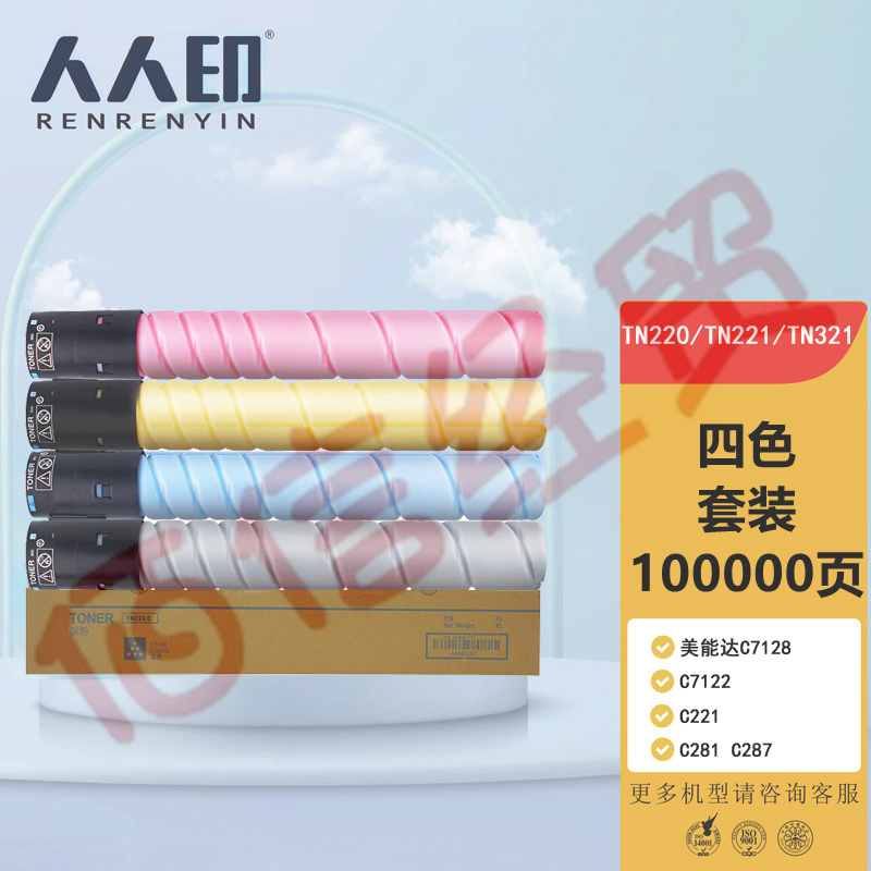人人印TN220粉盒套装 适用柯尼卡美能达C7128 C7122 C221 C281 C287墨盒 震旦ADT223 ADC223 S 283 碳粉 自营
