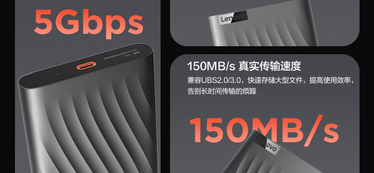 联想出品 ThinkPlus 1TB移动固态硬盘Type-C USB3.2高速传输540MB/s轻薄便携手机直连备份平板电脑外置存储器