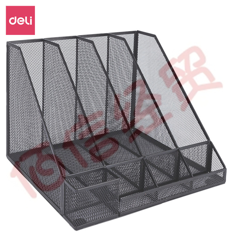 得力(deli)四联带笔筒收纳一体式文件框 办公室桌面多层资料架子 网状镂空文件架 黑色78988 自营