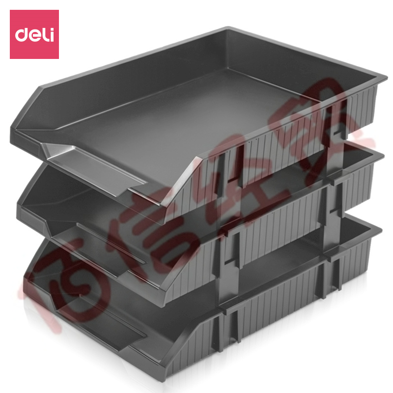 得力(deli)三层可调节收纳文件座 自由拆卸组装三层文件盘/文件框 资料整理收纳桌面文件管理 黑色 自营